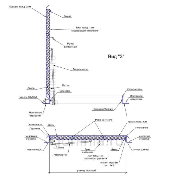 - внутренняя ручка для нижнего закрывания,