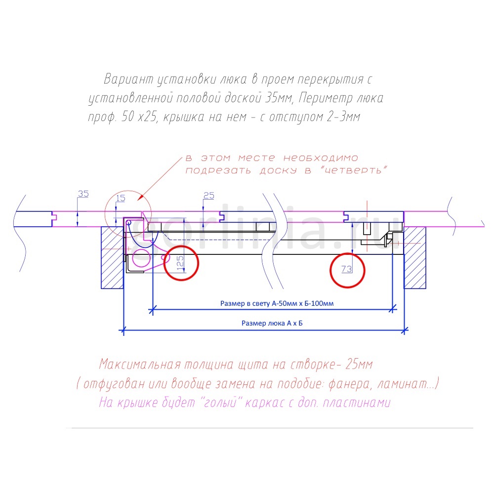 С прилегающего к петле пола на паразитку приходит половая доска с четвертью 15 мм. Дверь обшивается доской 25мм (в каркасе есть специальные полосы вдоль или поперек под саморезы) с запилом торца на угол, как на схеме во избежание залома кромок дерева при открывании.