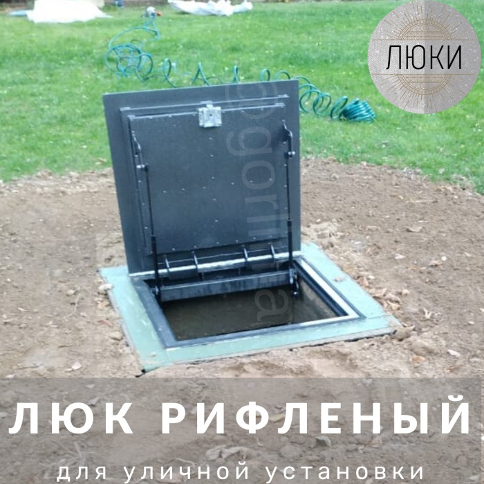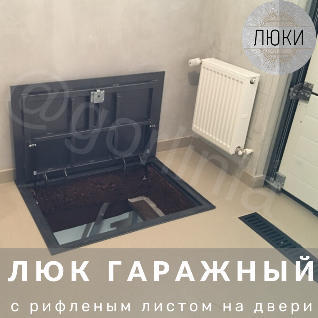 Основа напольного люка в гараже – это рама из сварного металлического уголка, в зависимости от предполагаемой нагрузки подбирается уголок 50х50 мм или 63х63 мм. Крышка – на ребра жесткости устанавливается рифленый металлический лист (чечевица), толщиной 3 мм.