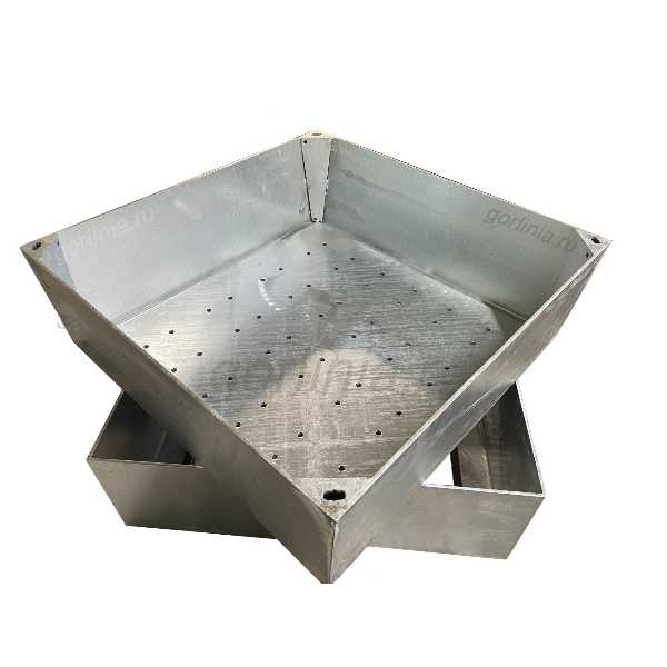Изделие изготовлено из чернового проката 5мм с покрытием методом горячего цинкования в ваннах с расплавом цинка. Снизу в дне вырезаны дренажные отверстия D10 с шагом 70-100 мм для сходы воды от полива.