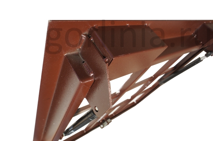 Облегченная модель в заказном размере без щелей в полу с уведенными за ось открывания петлями по длине 700. Легкая ходовая часть и удобная установка. При формировании конфигурации напольного отверстия обратите внимание, что защитные кожухи шарниров выходят за посадочную отметку по плечевой стороне 800.