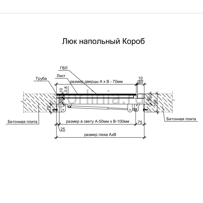 Рама без наличников выставляется в существующем отверстии 90*70 см с допусками, крепится в перекрытии через вертикальные пластины даже когда Ваш ремонт закончен и пол выложен керамогранитом или настелена ламинированная доска.
