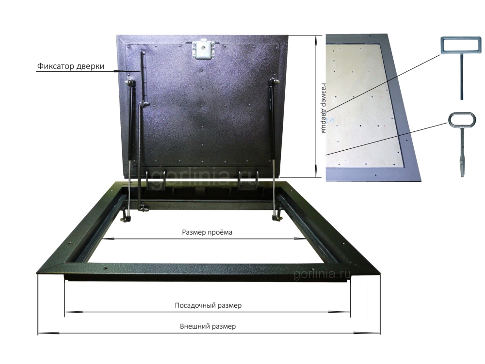 - удобная эксплуатация (открывается съемной металлической ручкой);