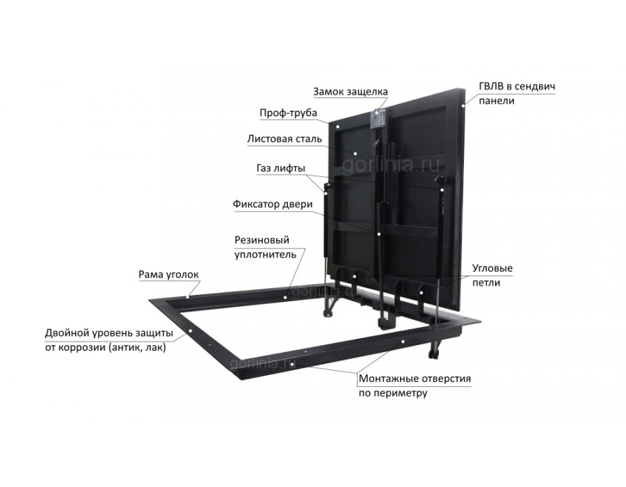 - пневматические цилиндры обеспечивают плавный ход верхней панели.